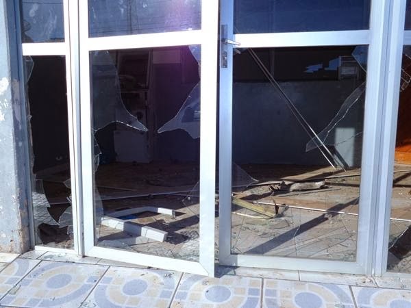 que acabou destruindo as portas de vidro, o caixa e teto da agência. Segundo
